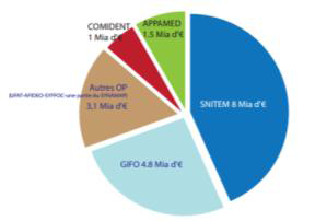 Les dispositifs médicaux sont définis comme « tout instrument, appareil, équipement, matière, produit, à l’exception des produits d’origine humaine, ou autre article utilisé seul ou en association, y compris les accessoires et logiciels intervenant dans son fonctionnement, destiné par le fabricant à être utilisé chez l’homme à des fins médicales et dont l’action principale voulue n’est pas obtenue par des moyens pharmacologiques ou immunologiques ni par métabolisme, mais dont la fonction peut être assistée par de tels moyens » (articles L 5211-1 R 5211-1 du CSP). Ainsi les entreprises produisant ou distribuant de tels produits comme par exemple, seringue, scanner, prothèse implantable, matériel de bloc opératoire, logiciel de télé suivi et transmission des données du patient, masque à oxygène, sont beaucoup plus nombreuses que ce que l’on peut penser. Le marché est estimé à 18 milliards d’euros (source Ministère de l’Industrie) réparti selon le schéma ci-après :
