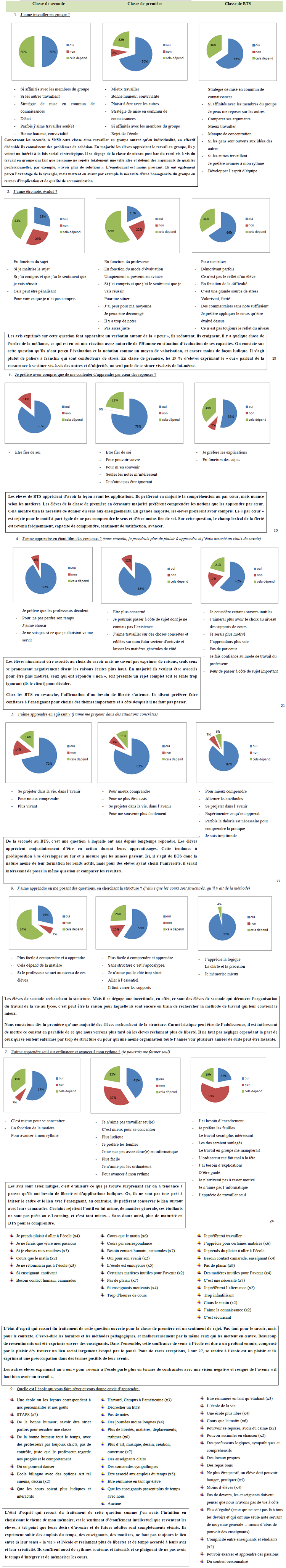Nous observerons les résultats des questionnaires selon le formalisme suivant, trois colonnes (par niveau des élèves) permettront d’observer :
