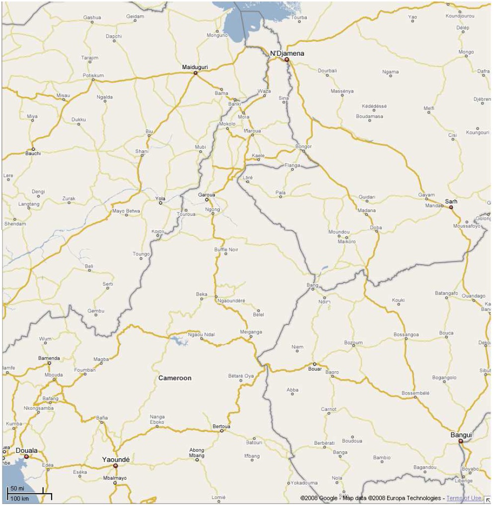 ➢ Soit alors : Douala-Ngaoundéré par chemin de fer, puis Ngaoundal-Meiganga-frontière