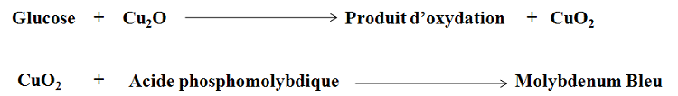Après avoir extrait, précipiter et hydrolyser le glycogène hépatique, le glucose formé est dosé par la méthode de Folin Wu : cette méthode est basé sur les propriétés réductrices du glucose en milieu alcalin et à chaud. En effet, cette solution de glucose est mise en contact avec un réactif cuivreux se qui va permettre au glucose de réduire l’oxyde cuivrique (Cu2O) et former un produit : l’oxyde cuivreux (CuO2) qui lui-même va réagir avec le réactif phosphomolybdique pour donner une coloration bleu d’autant plus intense qu’il ya d’oxyde cuivreux et de ce fait proportionnelle à la quantité de glucose présente initialement.