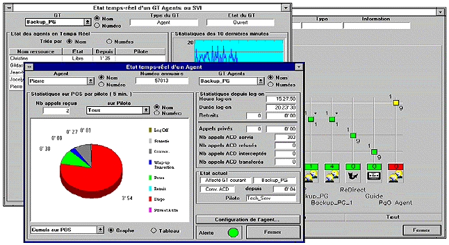Il est aussi possible de suivre un de ces éléments plus finement, toujours en temps réel, un agent (conseiller clientèle) par exemple :