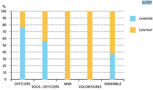 Figure 3 : Répartition entre militaires de carrière et militaires sous contrat par catégorie en 2011