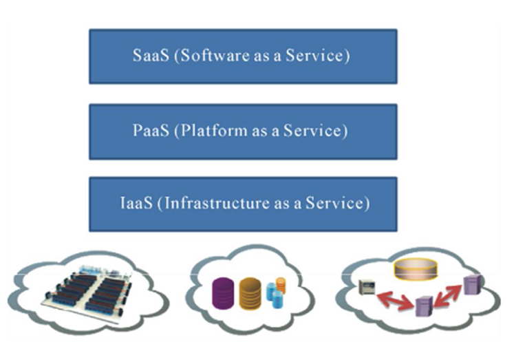 Il existe généralement trois types de services dans le cloud computing. Ces services s’organisent en trois niveaux successifs : le niveau infrastructure (IaaS), le niveau plateforme (PaaS) et le niveau application (SaaS) (Figure 1.2).