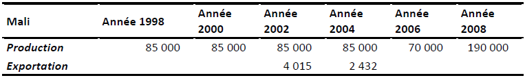 Tableau 10 : Production et exportations de karité
