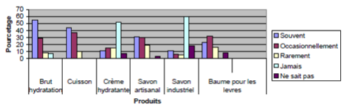 Une étude intéressante du CECI sur l’image de marque du karité en 2007 donne des informations sur la consommation malienne de karité. C’est le résultat d’une enquête dont la taille de l’échantillon était de 500 urbains (de Bamako et Sikasso).