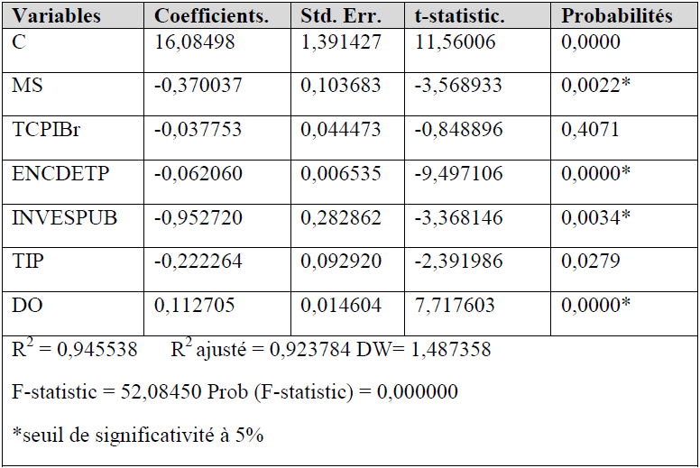 2.3.3. Analyse des résultats de régression et interprétation économique du modèle de l’investissement public.