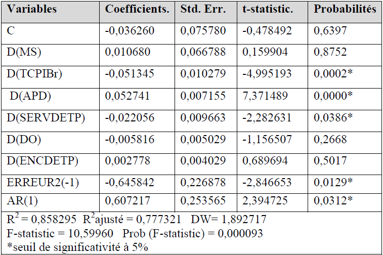 Tableau 10 : Présentation des résultats d’estimation du modèle (2) de court terme.