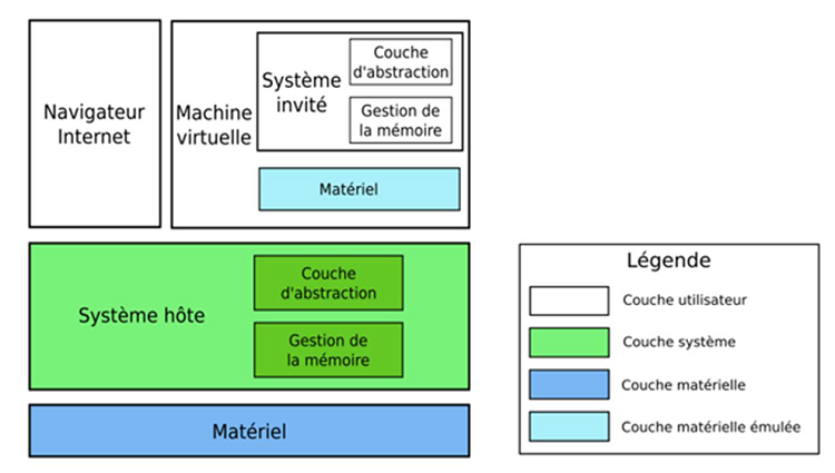 Figure 2.1: Principe de la virtualisation (adapté du schéma de la virtualisation complète de Bonnet, 2008).