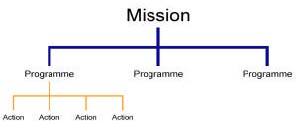 Le vote de la LOLF a donc eu pour objectif d « assainir » les finances publiques en améliorant la « performance publique ». Désormais, le budget de l’Etat se décline en missions, programmes et actions. Par exemple, le projet de loi de finances (90) pour 2012 comptait 32 missions.