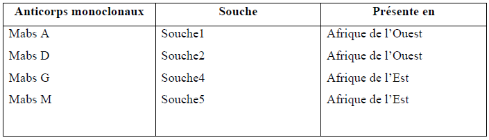 Tableau 4: Liste des anticorps monoclonaux de RYMV utilisés (N’guessan et al.,2000).