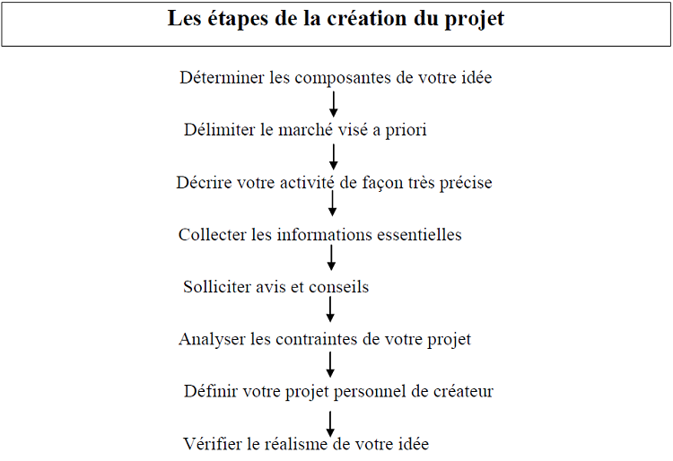 Pour passer à un projet réaliste, la première chose à faire est de bien la définir, c’est-à-dire de se forcer à la résumer en quelques lignes précises, concises et fortes. A ce stade de la réflexion, il faut s’efforcer de prendre conscience des “moins” (faiblesses, lacunes) du produit ou du service proposé, mais aussi, a contrario, des “plus” (caractère novateur ou spécifique) et de ses avantages concurrentiels. Qu’elle soit innovante ou classique, il faut que l’idée possède un marché pour qu’on puisse la qualifier de vraie opportunité.