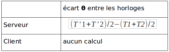 – θ la dérivation ou l’écart entre les horloges(serveur et client).