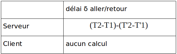 T2 l’instant de réception par le serveur du message émis à l’instant T’2 par le client ;
