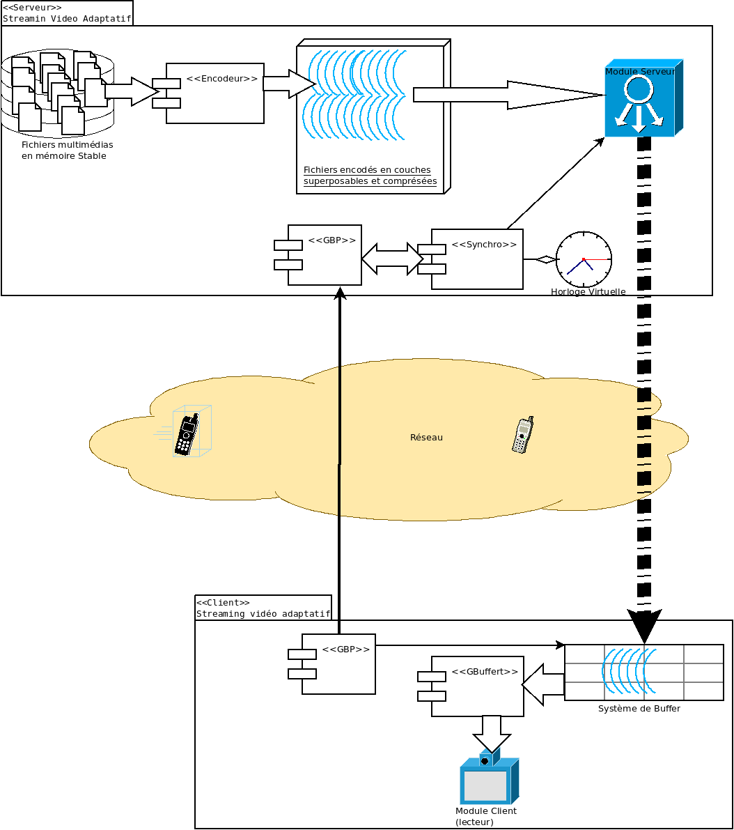Notre travail qui consiste à étendre [47] à une transmission vidéo continue nous a conduit à la proposition d’un modèle architectural dont l’illustration est donnée par la figure 3.1 : Cette architecture sera détaillée au chapitre 4 sur l’implémentation de notre modèle.