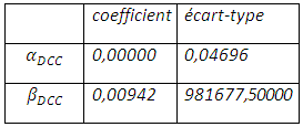 Tableau 4 : paramètres estimés de la DCC-mvgarch et leurs écart-types