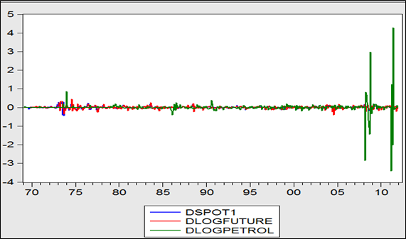 〖dspot〗_t=c+〖hlogfuture〗_t+〖dlogpetrol〗_t
