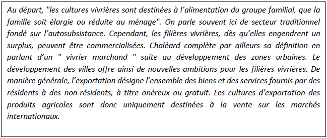 Encadré 1 : Définition des cultures vivrières et d’exportation, FONTAN (2006)