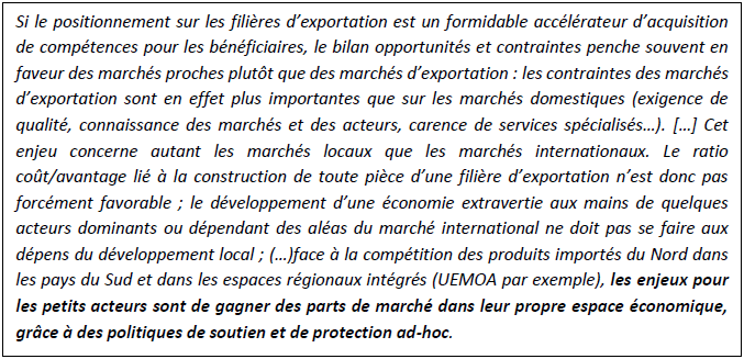 Encadré 3 : Filières domestiques ou filières d’exportation : Que choisir ?, LIAGRE et autres auteurs, 2005.