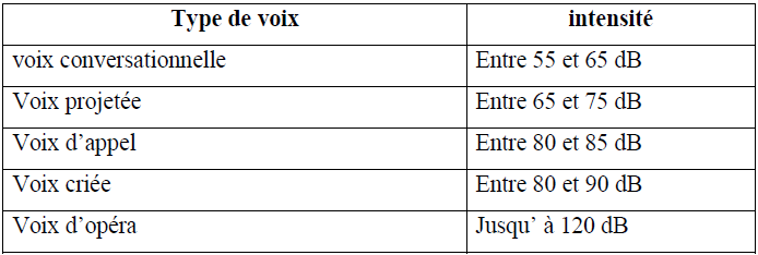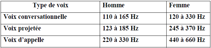 « Il s’agit d’une impulsion acoustique criée par une vibration des cordes vocales transmise au mélange gazeux expiratoire, et donne la fréquence propre (fréquence fondamentale) est ensuite modifier par des cavités de résonance (harmonique). Elle est caractérisée par son intensité (amplitude), sa hauteur (fréquence) et son timbre (richesse en harmoniques) »(6).