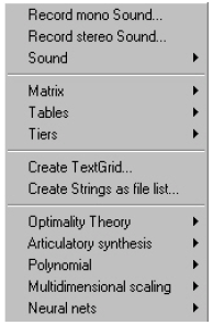 – Dans le menu principal de la fenêtre des « Praat objects » sélectionnez « New ».