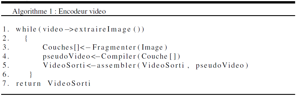 Algorithme 1 encodeur vidéo