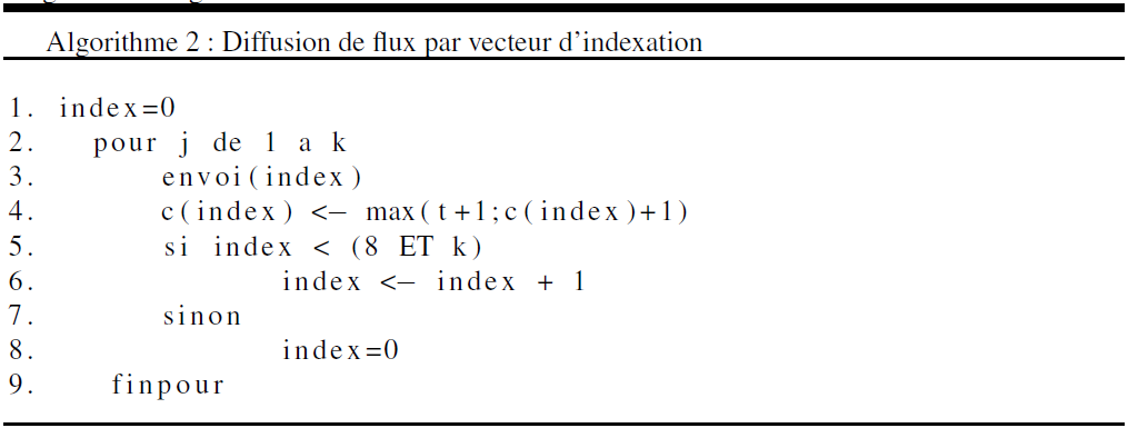 Algorithme 2 Diffusion de flux par vecteur d'indexation