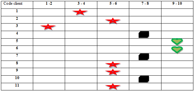 Un traitement de cette question nous permet de ressortir le tableau suivant avec des numéros que nous avons attribué aux différents clients (à l’entête de chaque questionnaire), pour assurer leur anonymat: