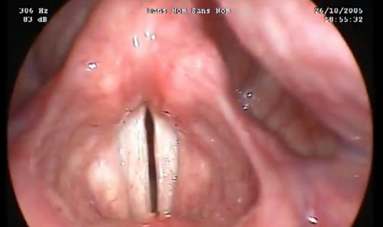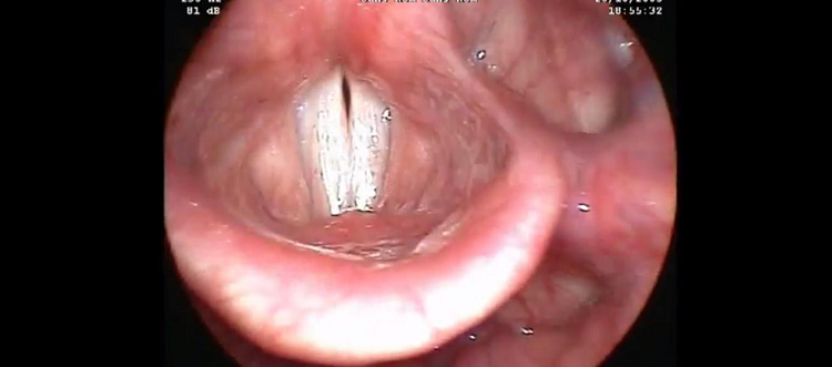 Vidéo de l’examen ORL « stroboscopie » d’un patient qui présente une paralysie récurentielle.