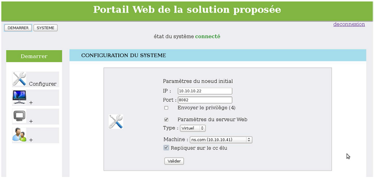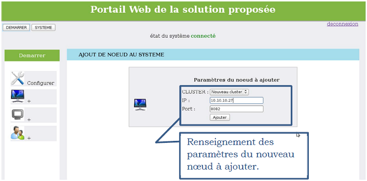 Toutes les opérations d’administration du système peuvent également se faire via cette même interface Web. Les figures 7.7 et 7.8 et 7.9 présentent quelques fonctionnalités du système par l’intermédiaire de notre plateforme Web.