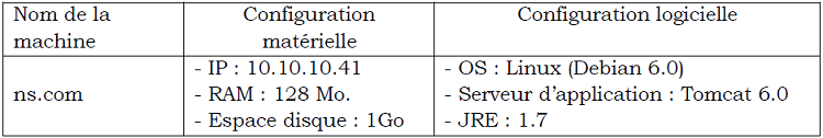 Tableau 7.2 : Configuration de la machine virtuelle « ns.com ».