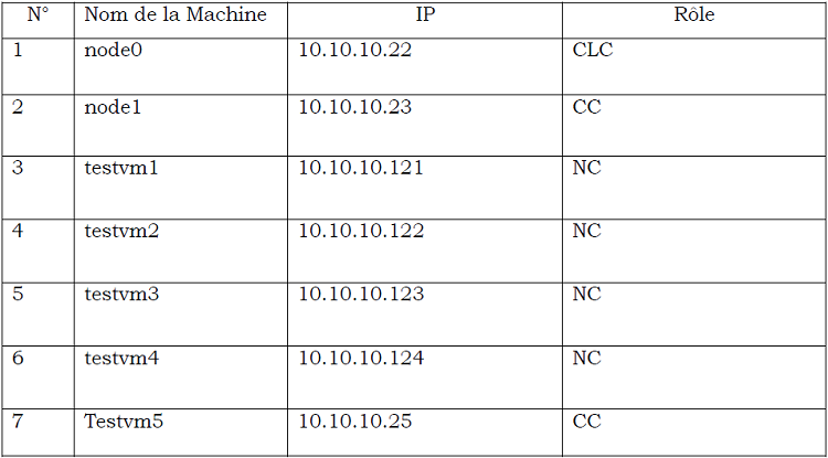 Tableau 7.3: Liste des hôtes le test de l’algorithme proposé.
