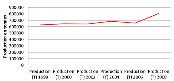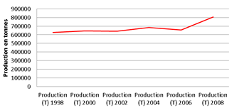 Graphique 4 : Evolution de la production mondiale de noix de karité entre 1998 et 2008