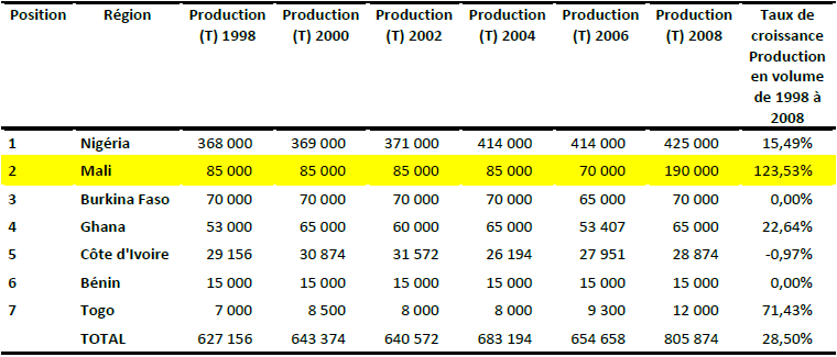 La production a progressé ; elle est passée d’environ 30 000 t à 176 000 t de beurre de karité produit en l’espace de quarante ans. On a une progression d’environ 154 % sur cette période.