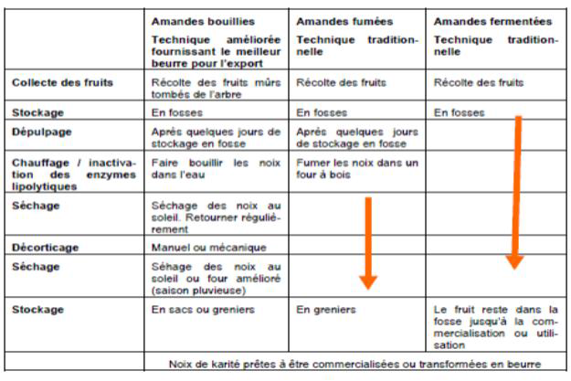 Tableau 6 : Techniques de production des amandes de karité, GRET, 2004