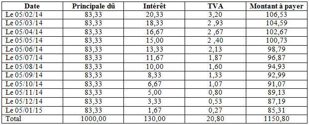 Le tableau ci-haut nous présente les détails des frais des fournitures de bureau de démarrage.