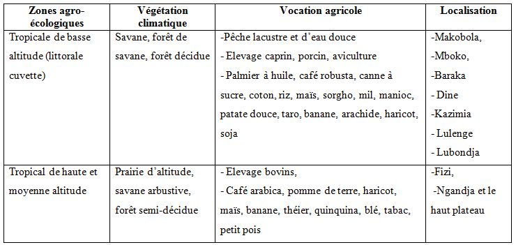 Les caractéristiques géo-climatiques du Territoire de Fizi sont représentées dans le tableau ci-après :