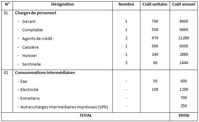 Ainsi, après enquêtes et analyse des équipements qu’exige une IMF, la durée de vie de cette institution peut être même estimée à 10 ans, mais compte tenu des risques financiers aux initiateurs du projet et aux bailleurs des fonds, nous la fixons à 5 ans.