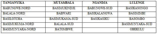 La subdivision administrative du territoire de Fizi par secteur se présente de la manière suivante :