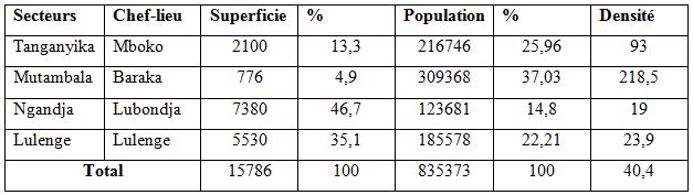 L’effectif de la population du territoire de Fizi est représenté par secteur dans le tableau ci-après :