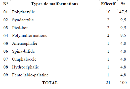TABLEAU I. La fréquence des malformations congénitales selon leur type