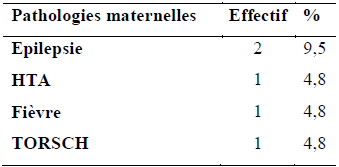 Le tableau suivant montre la survenue d’une malformation congénitale et la pathologie maternelle