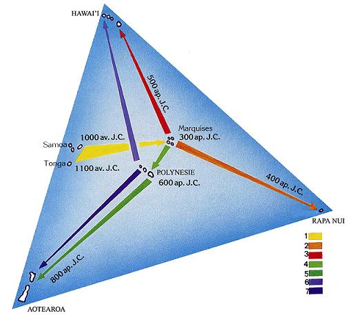 « La Mélanésie » regrouperait ainsi selon Dumont D’Urville, les populations à peau noire : « mélanos, mélas » du mot grec signifiant « noir » et le suffixe « nésos » signifiant « île » ; « Polynésie » venant du mot grec : « polus » signifiant « nombreux ». Ces archipels regrouperaient les populations de plus grandes tailles à peau claire. Elle s’étendrait de l’Iles Pâques, près des côtes sud américaines, aux Iles Hawaï au nord et la Nouvelle-Zélande au Sud qui formerait ce qu’on appelle communément le « triangle polynésien ». La Micronésie, « micros » signifiant « petit », cet espace regroupe les populations pro- asiatiques éparpillées dans les îlots. Serge Tcherkézoff, un des anthropologues français contemporain spécialiste des sociétés polynésiennes, a abordé cette problématique. Il confirme que :