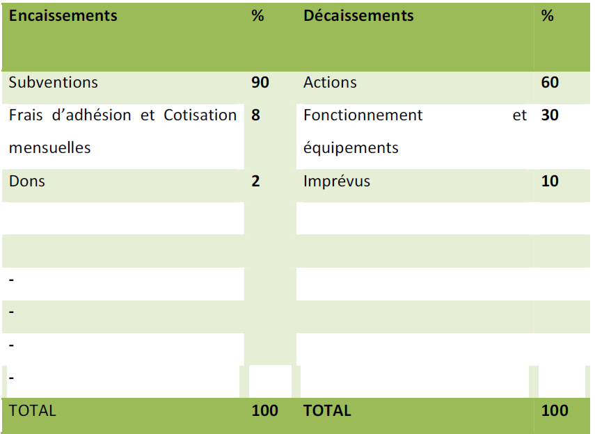Tableau descriptif de la trésorerie d’une Organisation Non Gouvernementale(4)