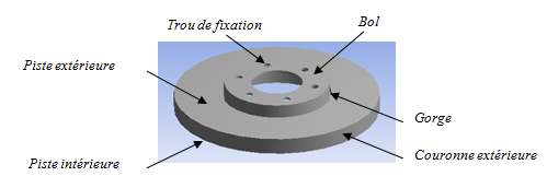 Le disque est constitué d’un anneau plein avec deux pistes de frottement (Fig. I.7), d’un bol qui est fixé sur le moyeu et sur lequel est fixée la jante et d’un raccordement entre les pistes et le bol. Ce raccordement est nécessaire car l’anneau et la partie du bol qui est fixée au moyeu ne sont pas sur un même plan pour des questions d’encombrement et de logement des plaquettes et de l’étrier. La jonction entre le bol et les pistes est souvent usinée en forme de gorge pour limiter le flux de chaleur issu des pistes vers le bol afin d’éviter un échauffement excessif de la jante et du pneumatique.