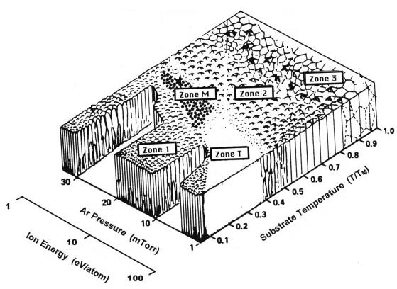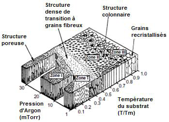 En fait, plusieurs modèles fondus sur des approches liées à la croissance des couches minces ont été développées pour étudier l’influence des paramètres d’élaboration sur la microstructure des couches. Une première description de la morphologie de couches minces obtenues par dépôt physique en phase vapeur a été présentée par Movchan et Demchishin en 1969 [2].