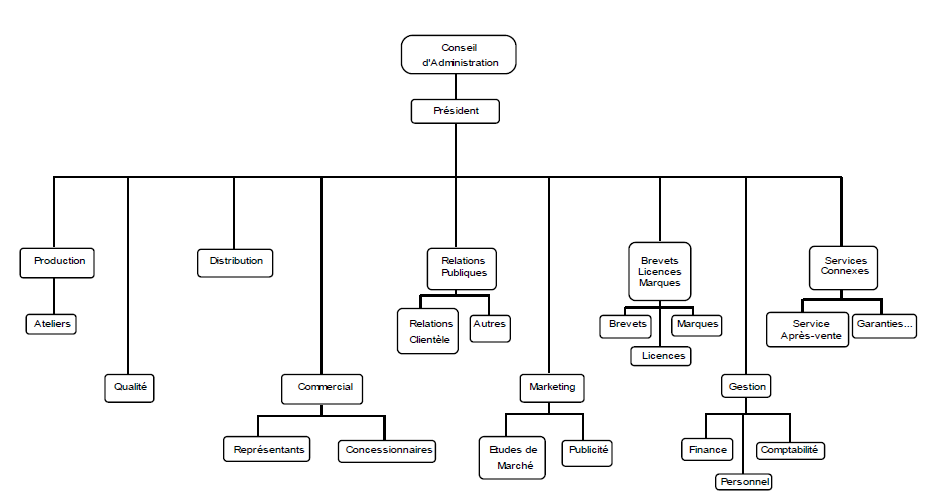 * Une division production qui s’occupe de la production à part entière du produit proposé; elle doit regrouper l’ensemble des ateliers du processus de production.