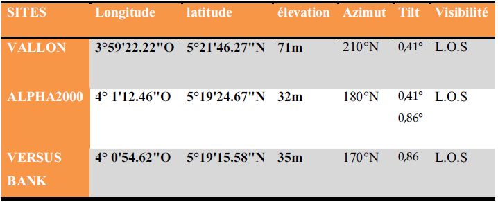Tableaux 13 : Coordonnées Géographiques des Sites à installer