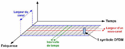 L’idée de base de l’OFDM réside dans le fait de répartir un canal haut-débit en une multitude de sous-canaux, lesquels sont modulés à bas-débits. Chacun de ces sous-canaux est modulé par une fréquence différente, l’espacement entre chaque fréquence restant constant.