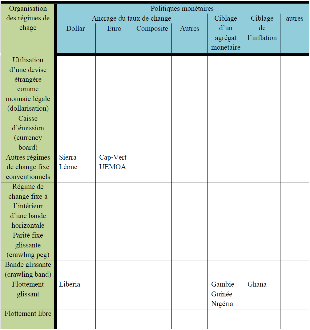 Le but de cette partie est d’analyser le lien entre régime de change et politique monétaire, et l’évolution des régimes de change dans la CEDEAO.