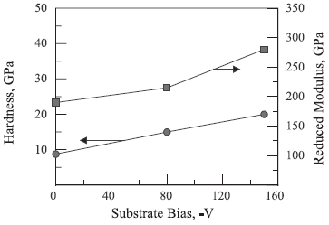 Comme la polarisation a un effet sur la composition et la structure des dépôts, leurs contraintes internes dépendent aussi de ce paramètre. Plusieurs études [23,31] s’intéressent à l’influence de la polarisation du substrat sur la tension interne des revêtements en WC obtenus par pulvérisation réactive.